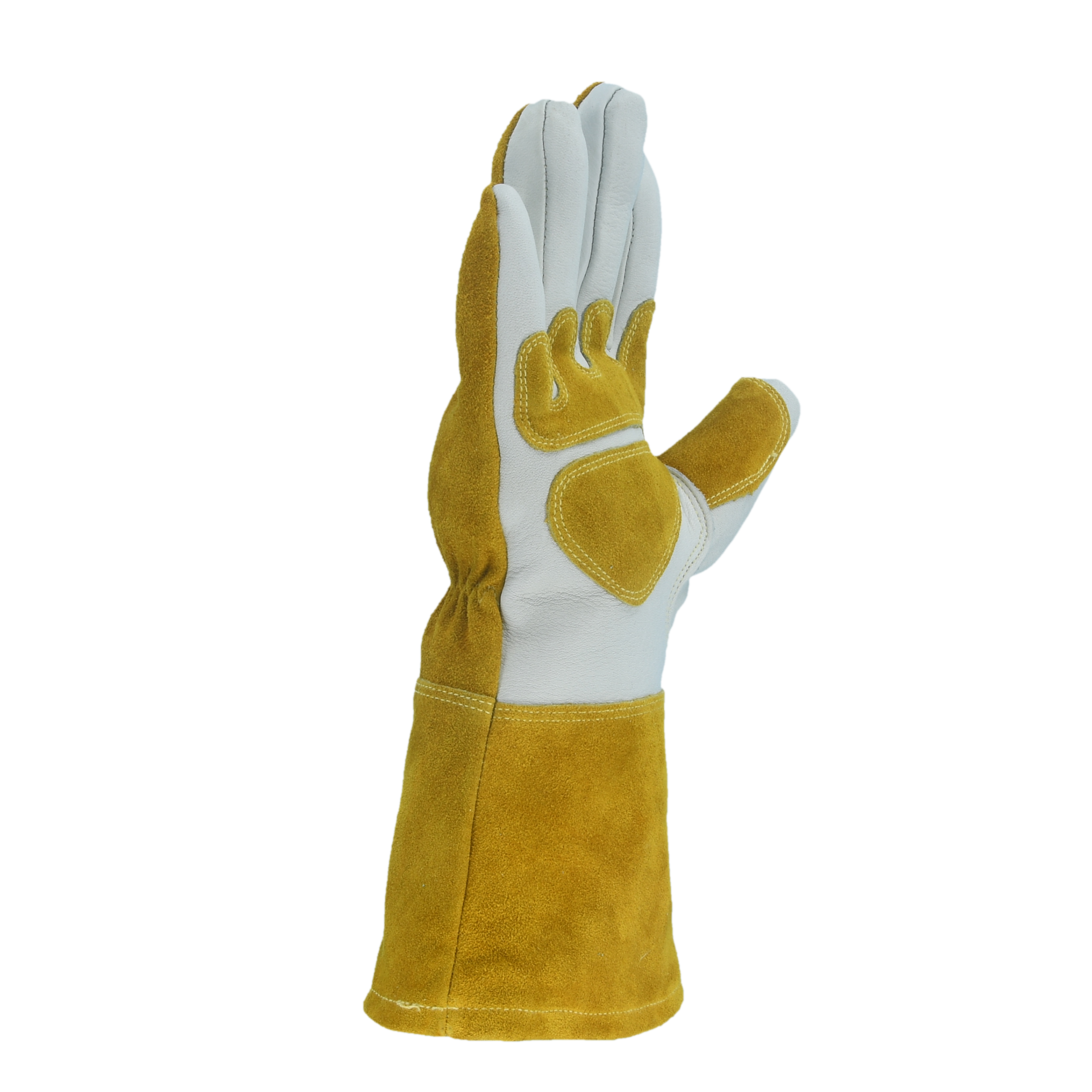 Foam Lined Cowhide Grain Welders Glove, Natural Premium Grade, Golden Brown Cuff, Reinforced Patches, Keystone Thumb, S-XL